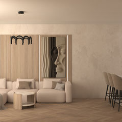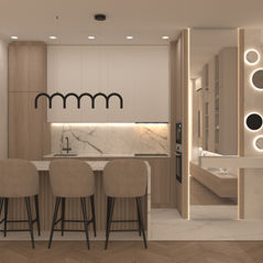 „FOHAR“ е изискан интериор, изграден върху хармония между топло дърво, светъл камък и фино акцентно осветление. Пространството съчетава минимализъм и уют, като използва естествени текстури, меки форми и модерни черни детайли. Резултатът е елегантен, спокоен дом с балансирана атмосфера и премиум излъчване.